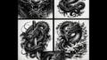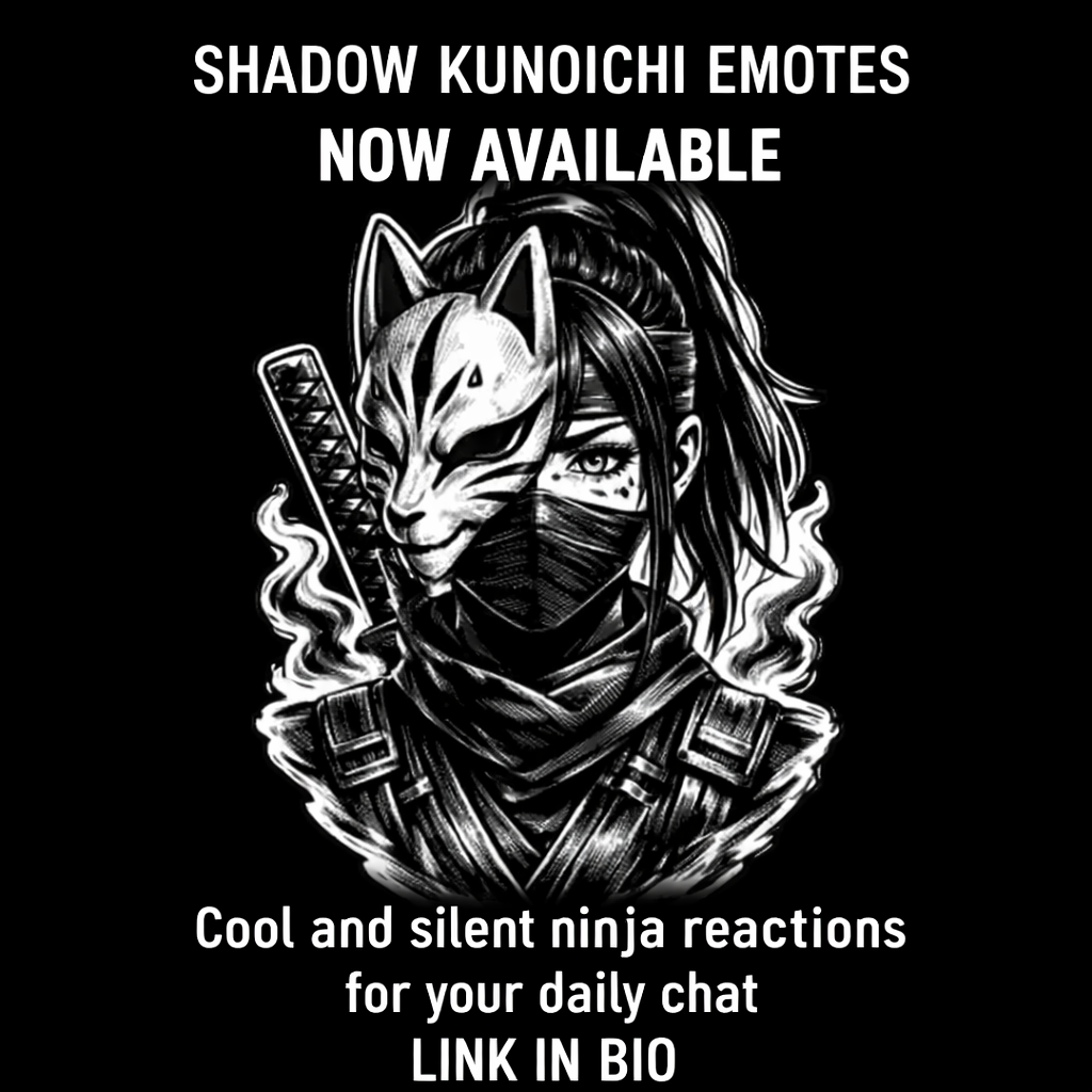 This sticker set features a cool and emotionless kunoichi character designed in a blackwork tattoo style