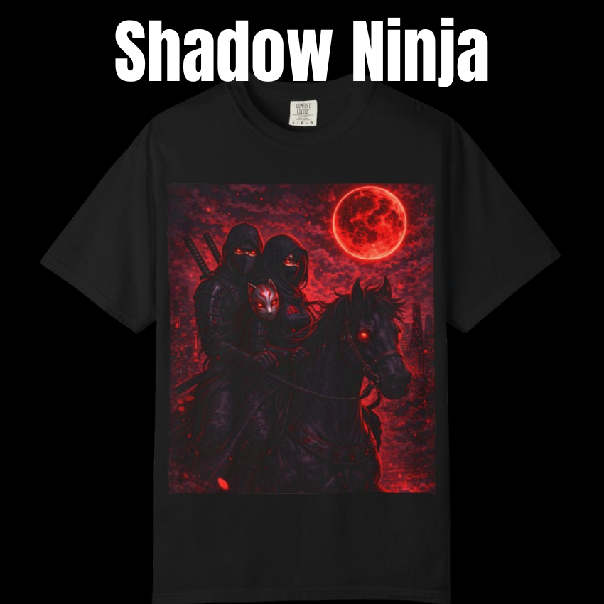 Introducing the Shadow Ninja T-Shirt — a bold fusion of Japanese aesthetics, dark streetwear, and blackwork tattoo style.