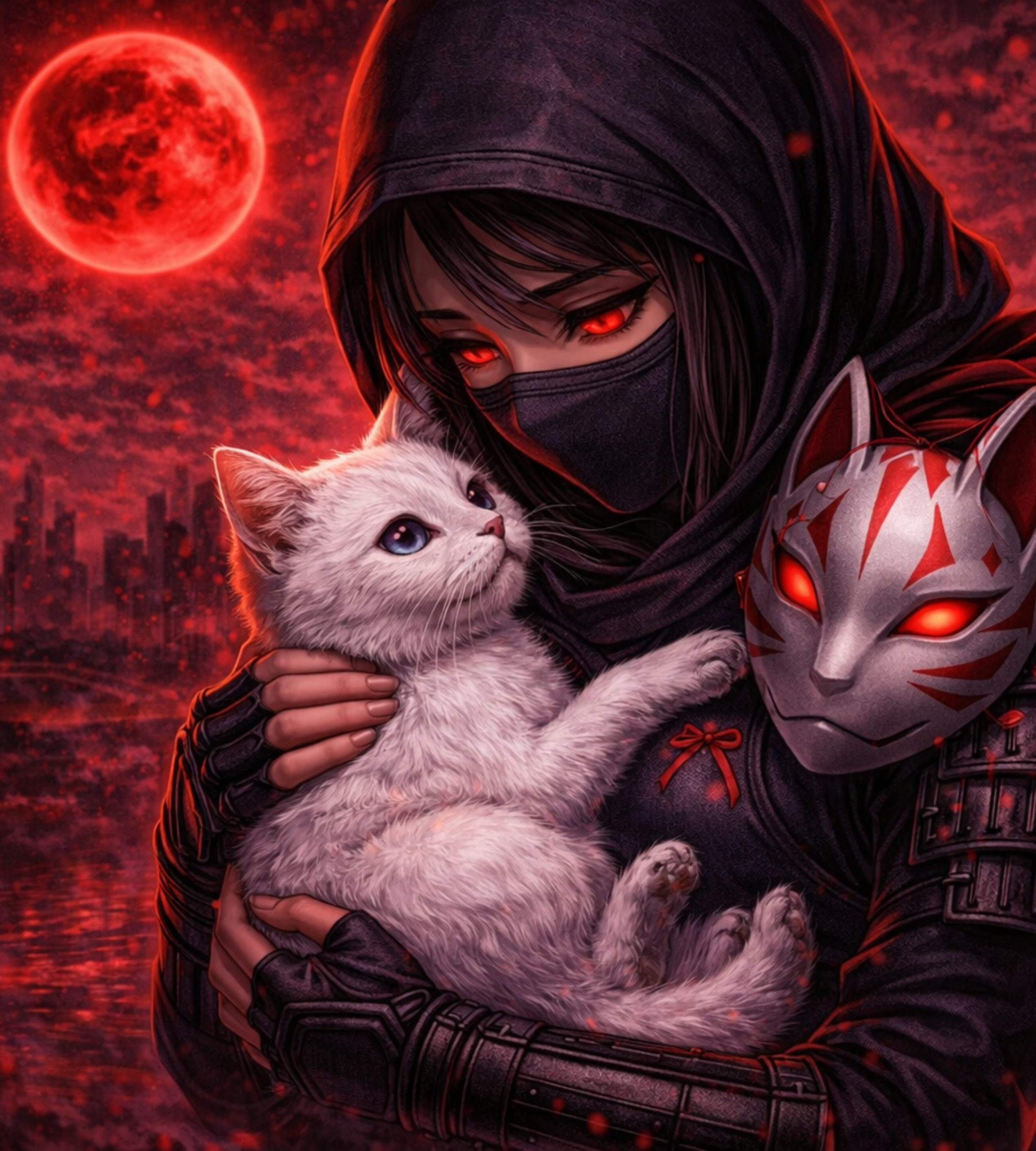 Under a crimson moon, in a silent city,